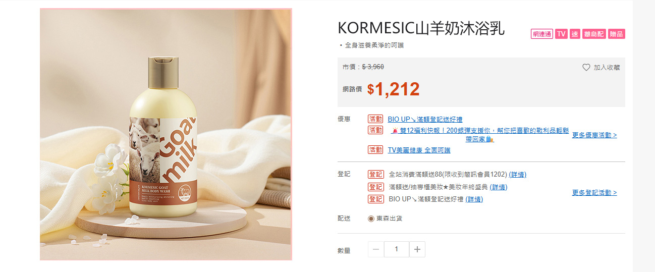 原價3690元1瓶的KORMESIC山羊奶沐浴乳250ML